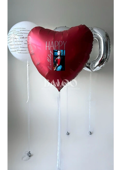 Набор шаров с красным сердцем с фото и большим шаром с комплиментами №3411 — отзывы