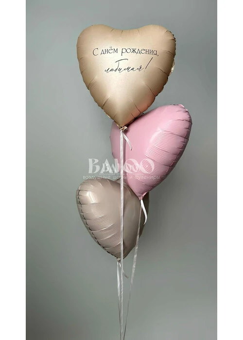Набор гелиевых шаров с сердцами в нежных тонах на день рождения №3417