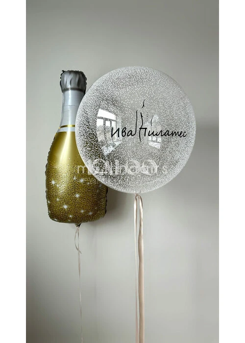 - Воздушный латексный гелиевый шар баблс 24 дюйма с индивидуальной надписью и наполнением глиттер*