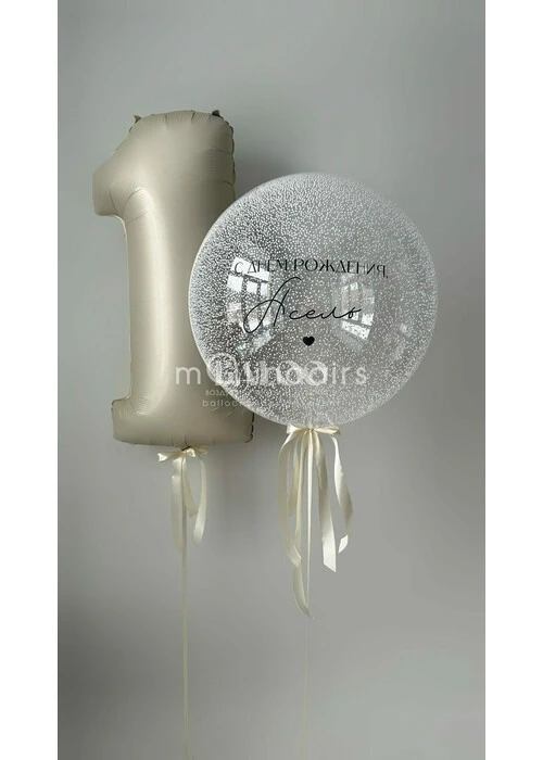 Набор гелиевых шаров на годик с бежевой цифрой и большим шаром №2011 — отзывы