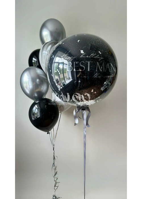 Набор шаров в черном и серебряном цвете на день рождения мужчины №3365