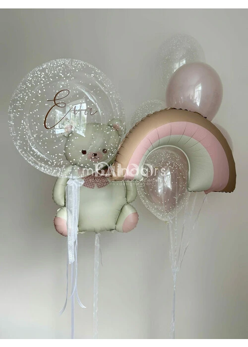 Набор воздушных шаров для девочки с радугом и мишкой №9906