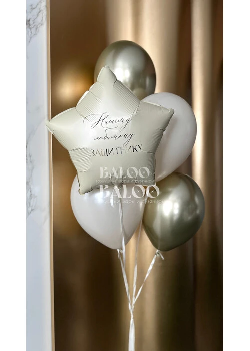 Набор гелиевых воздушных шаров на 23 февраля с бежевой звездой №0148