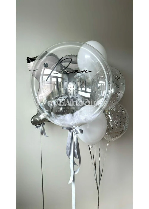 - Латексный гелиевый шар баблс 24 дюйма с перьями и индивидуальной надписью*