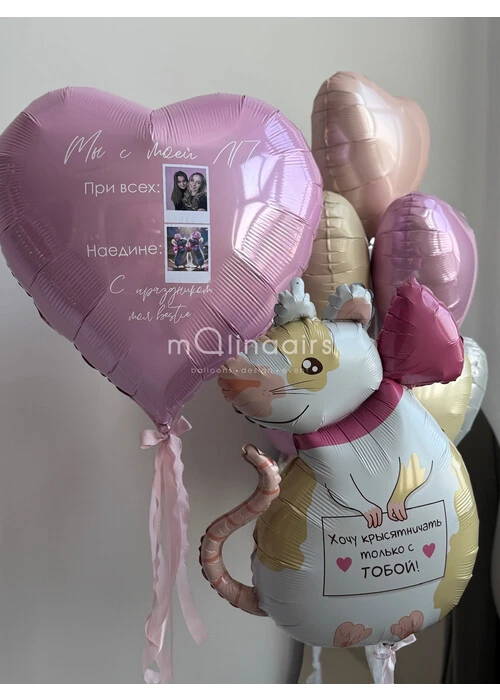 Набор гелиевых воздушных шаров на 8 марта для близкой подруги с крыской №0171 — отзывы