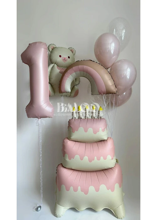 Набор воздушных шаров для девочки на годик с тортом №9907