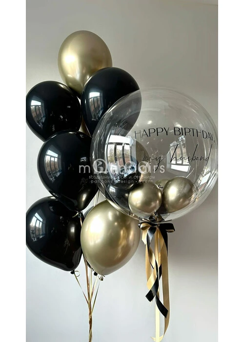 Набор гелиевых шаров с черным и золотым цветом на день рождения мужчины №3371