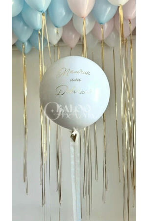 Шар белого цвета с золотой надписью на гендер-пати №3421