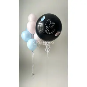 Набор гелиевых шаров на гендер-пати с большим черным шаром и связкой №3428