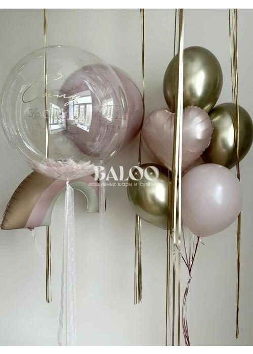 Набор гелиевых воздушных шаров на выписку прозрачный шар с шарами под потолок №9837 — отзывы