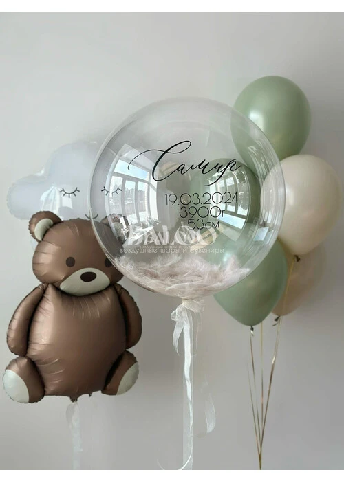 Набор гелиевых шаров на выписку с мишкой и облаком №3204 — отзывы