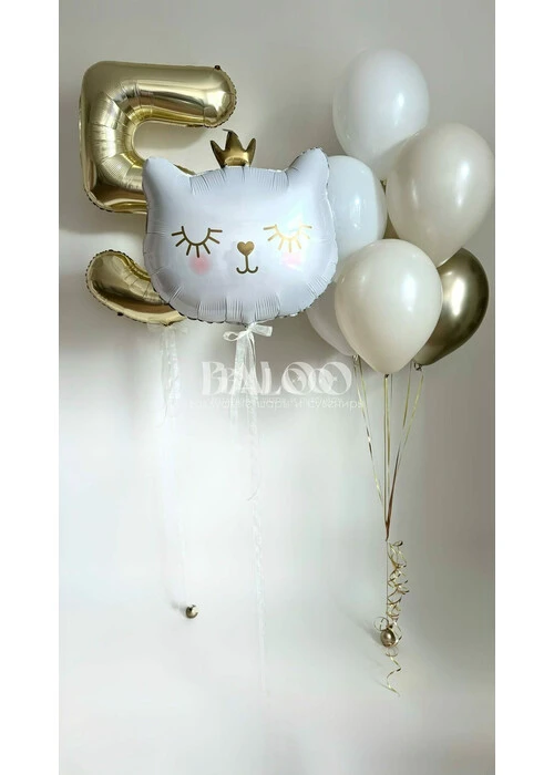 Состав набора: Фольгированная фигура Кошечка в короне Связка из воздушных шаров 7 шт Цифра