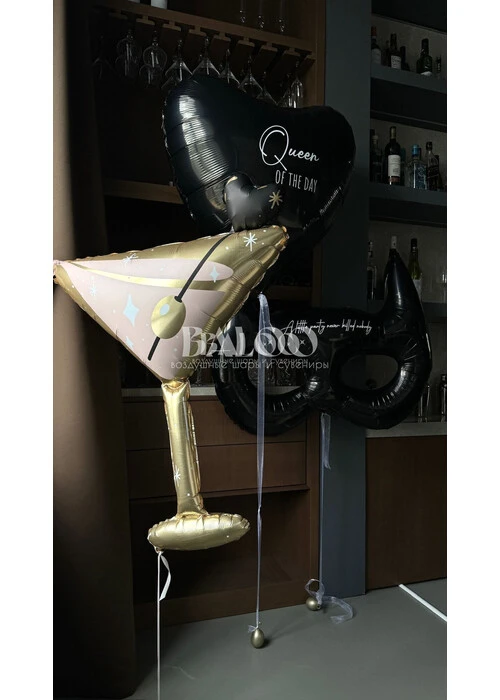 Набор гелиевых шаров с бокалом, маской и черным сердцем на девичник №3311 — отзывы