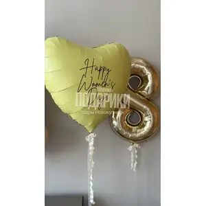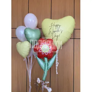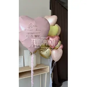 Набор гелиевых воздушных шаров на 8 марта с поздравлением на фольгированном сердце №0167