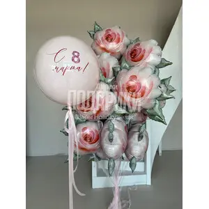 Набор гелиевых воздушных шаров на 8 марта с розами и большим шаром №0178