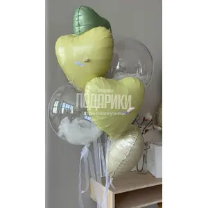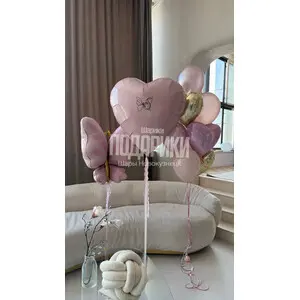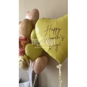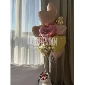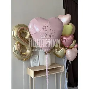 Набор гелиевых воздушных шаров на 8 марта со связкой из сердец нежного цвета №0186