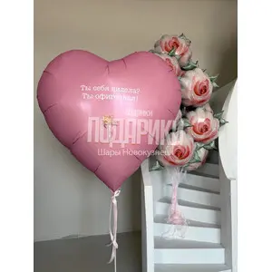 Набор гелиевых воздушных шаров на 8 марта с гигантским сердцем и розами №0184