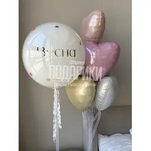 Набор гелиевых воздушных шаров на 8 марта с большим шаром и связкой сердец №0161
