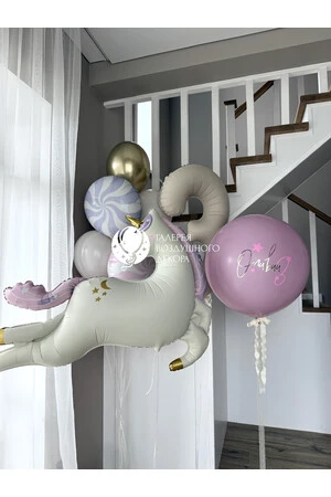 Набор воздушных шариков с единорожкой и цифрой для девочки №11