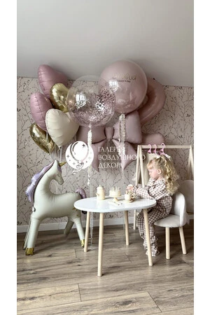 Набор из воздушных шаров с бантом и единорогом №15
