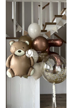 Набор гелиевых шариков на годик для малыша в бежевых оттенках №4