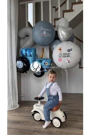 Набор гелиевых шаров с фигурой Синий трактор и цифрой №19