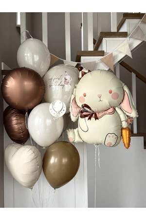 Набор гелиевых шаров с фигурой бнжнвого зайчика в колпачке №20