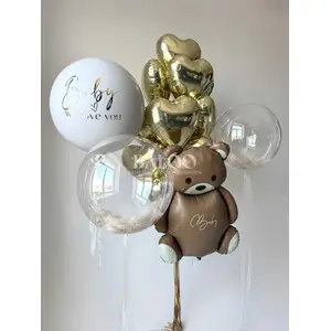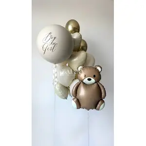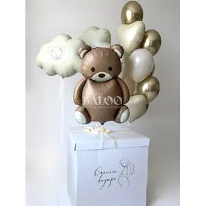 Набор воздушных шаров на гендер пати с мишкой и большим бежевым шаром №600