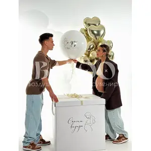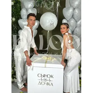 Набор гелиевых воздушных шаров на гендер пати белого цвета с коробкой сюрприз №610