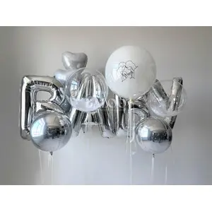 Набор гелиевых воздушных шаров на гендер пати бело серебрянного цвета №602