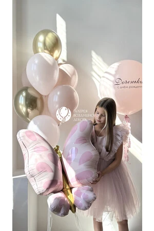 Набор воздушных шаров для девочки с розовой бабочкой №16
