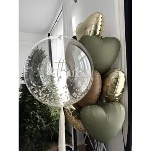 Набор гелиевых шаров для мамы с прозрачным шаром с гортензией и связкой сердец №5