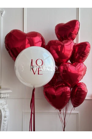 Набор гелиевых шаров на 14 февраля с сердцем и надписью № 1911