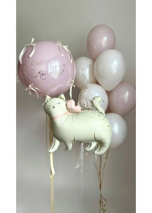Набор воздушных шаров для девочки с кошкой №9914