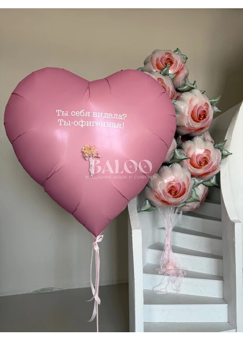 Набор гелиевых воздушных шаров на 8 марта с гигантским сердцем и розами №0184 — отзывы