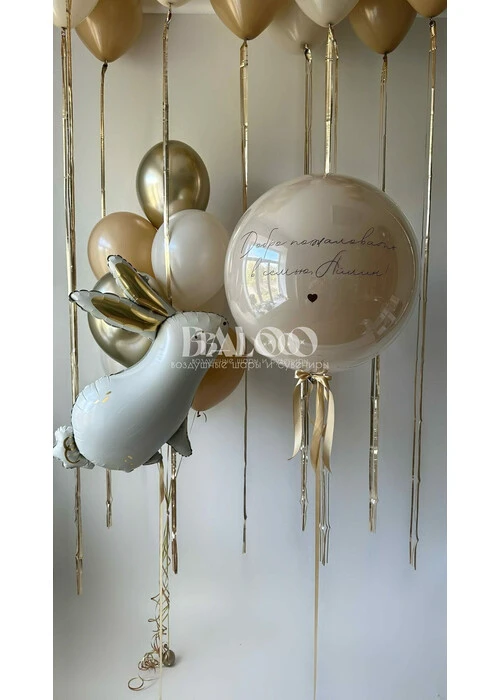 Набор гелиевых шаров на выписку с зайкой в бежевых тонах №3259 — отзывы