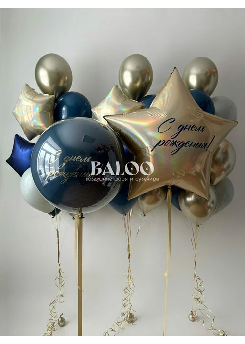 Набор гелиевых шаров со золотой звездой, большим шаром и связками №3393 — отзывы