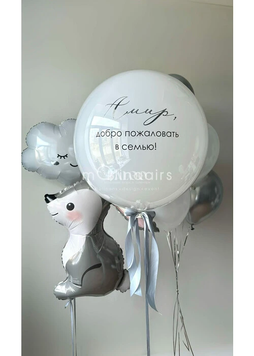 Набор шаров с зайчиком, облачком и большим шаром на выписку №3226