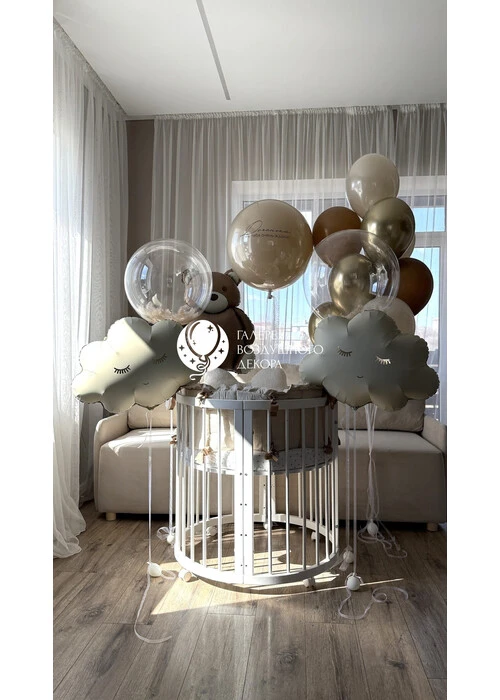 Набор гелиевых шаров с коричневым мишкой и облочками №2
