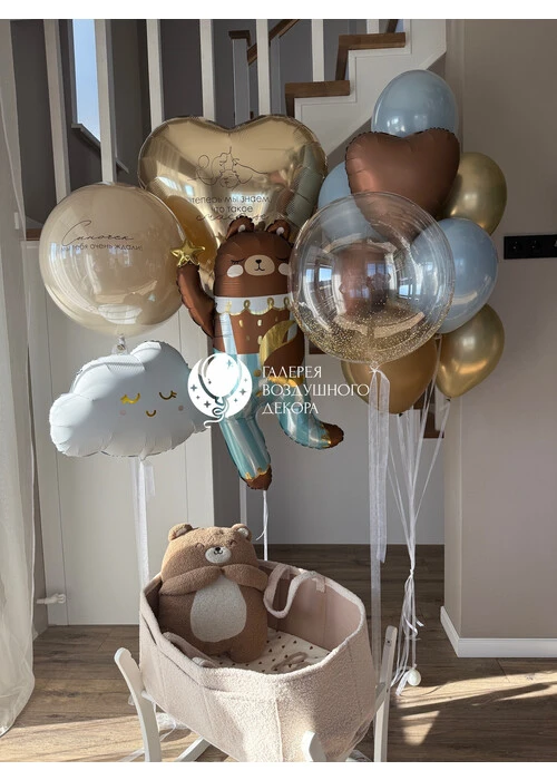 Набор нелиевыз шарикорв на выписку с мишкой и большим сердцем №3 — отзывы