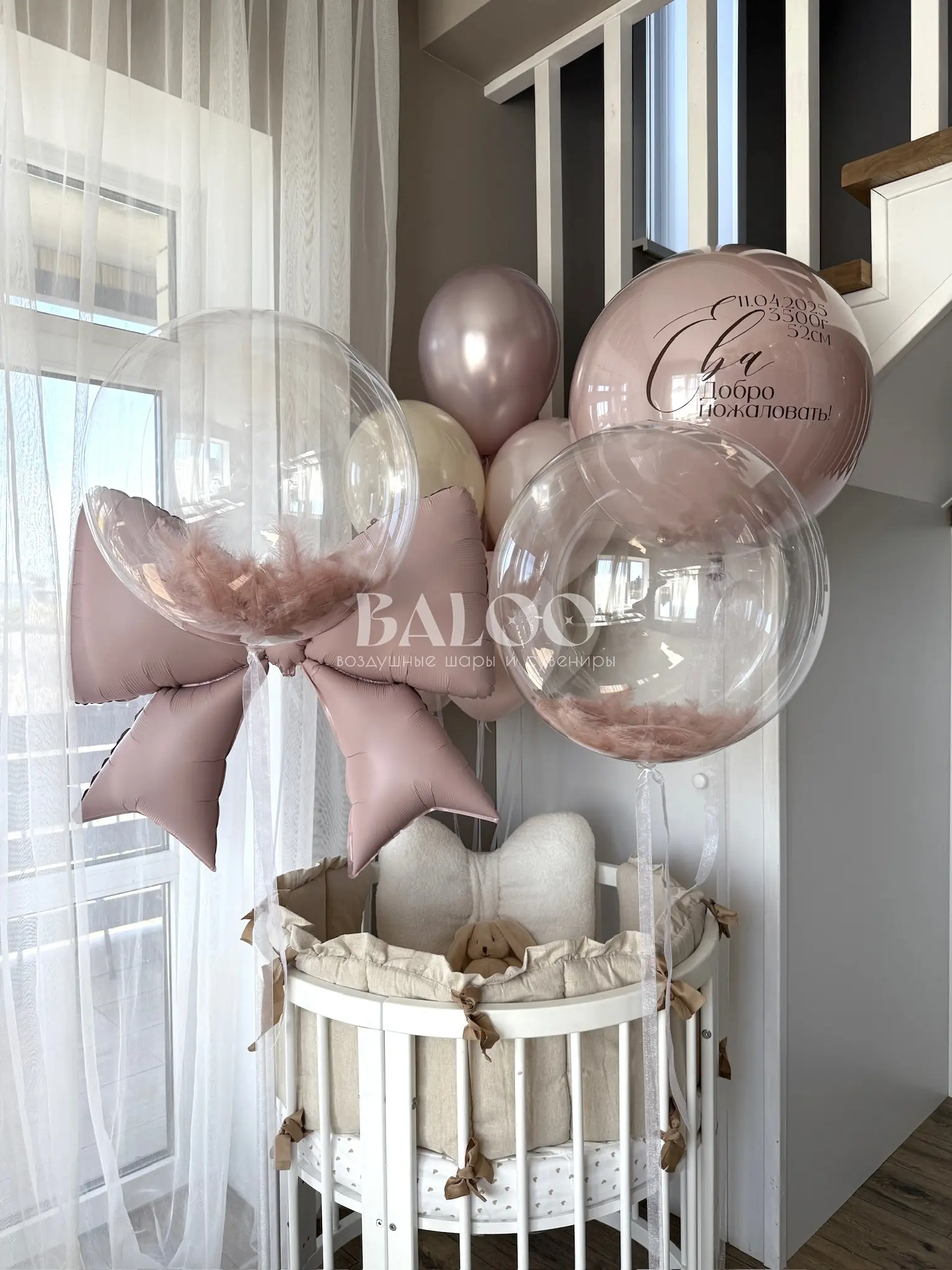Набор воздушных шаров на выписку для девочки с бантом №5