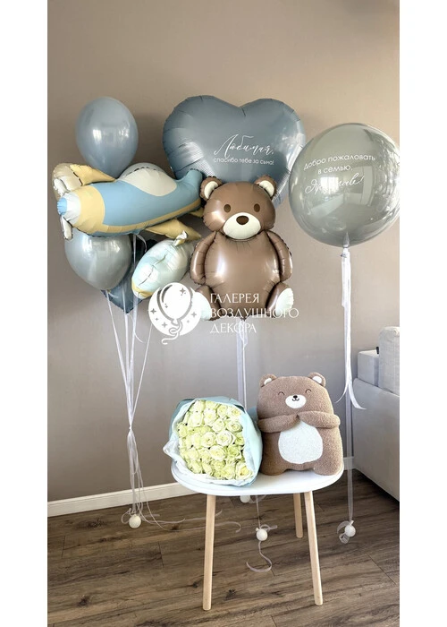 Набор воздушных шаров на выписку для мальчика с самолетиком №10