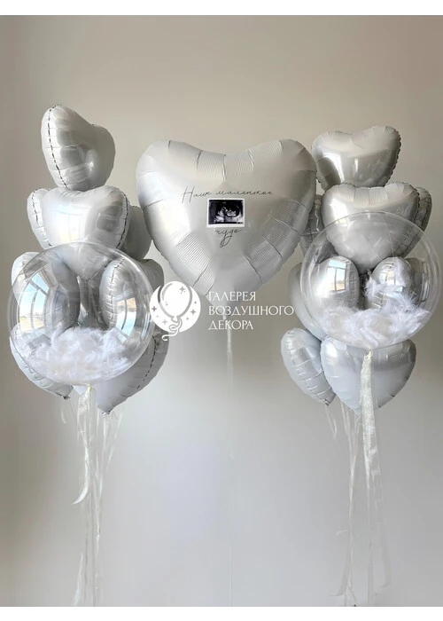 Набор гелиевых шаров на гендер пати в белом цвете с большими сердцами №595 — отзывы