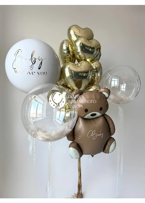 Набор гелиевых шаров на гендер пати с золотыми шарами и мишкой №596 — отзывы