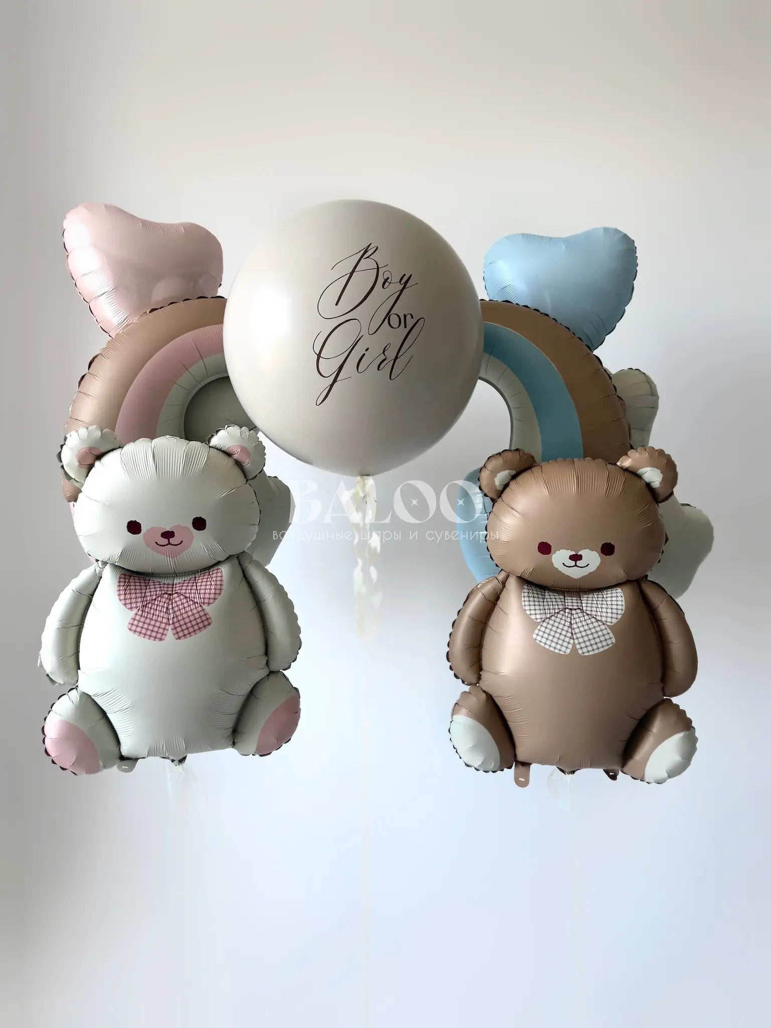 Набор воздушных гелиевых шаров на гендер пати с мишками №598