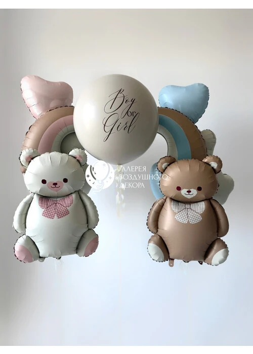 Набор воздушных гелиевых шаров на гендер пати с мишками №598 — отзывы