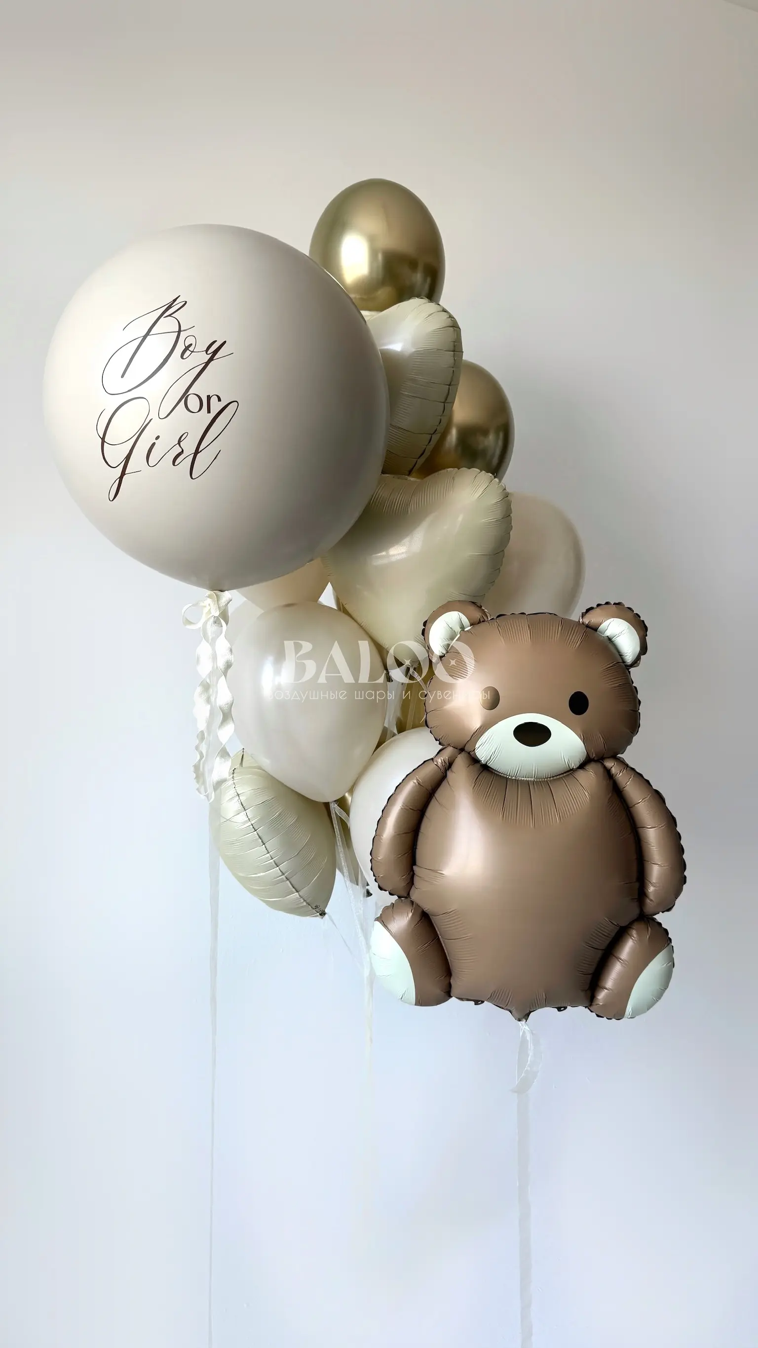 Набор воздушных шаров на гендер пати с мишкой и большим бежевым шаром №600 — отзывы