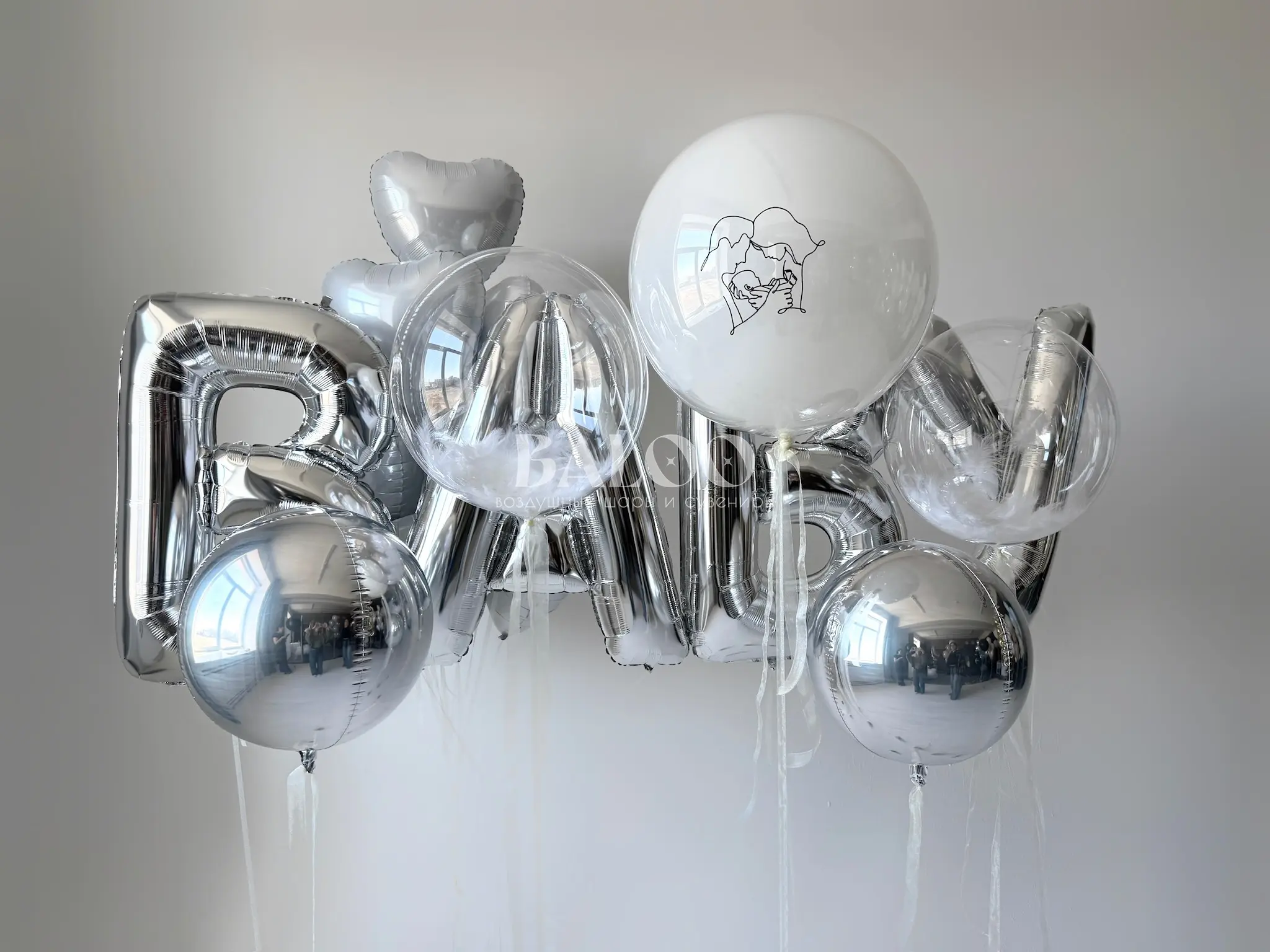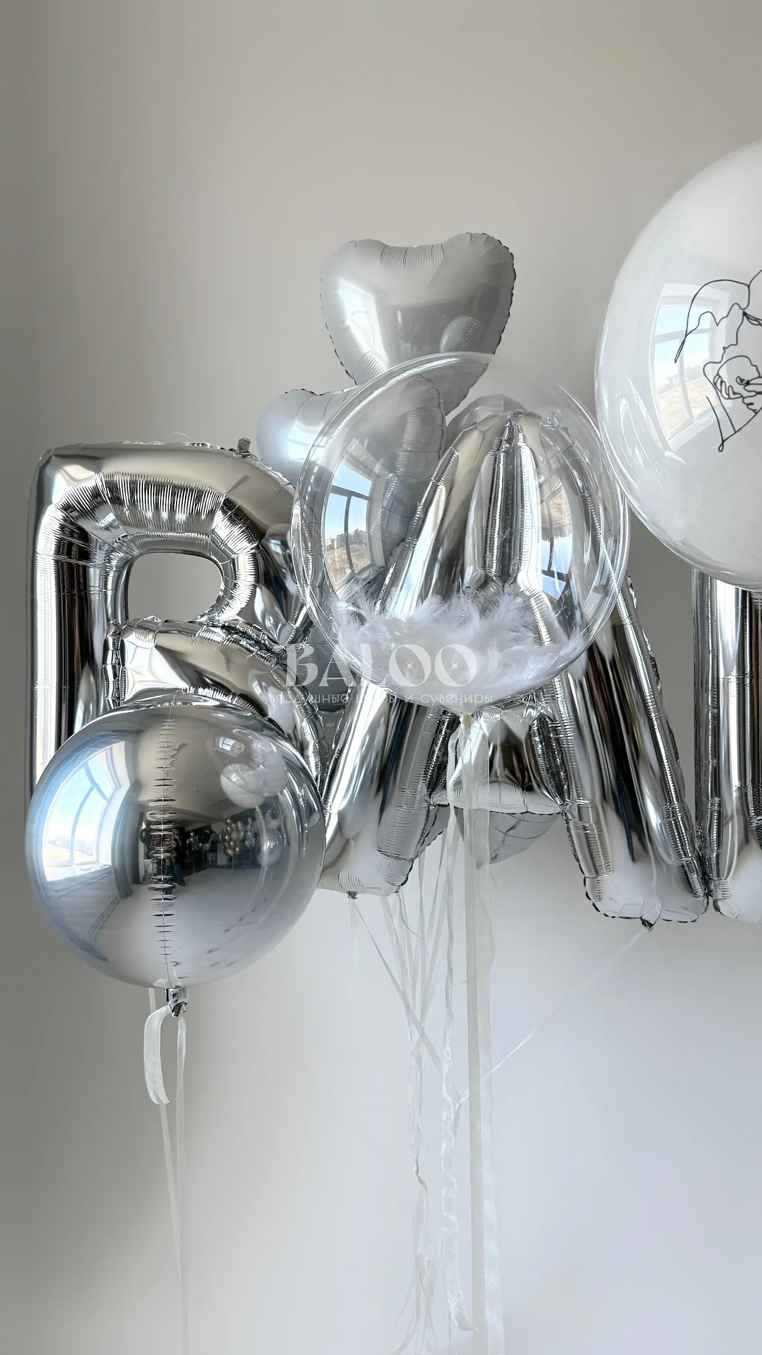 2 бабл шара с перьями