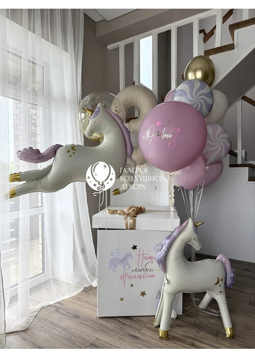 Набор Каробка-сюрприз с воздушными шарами единорогами №9