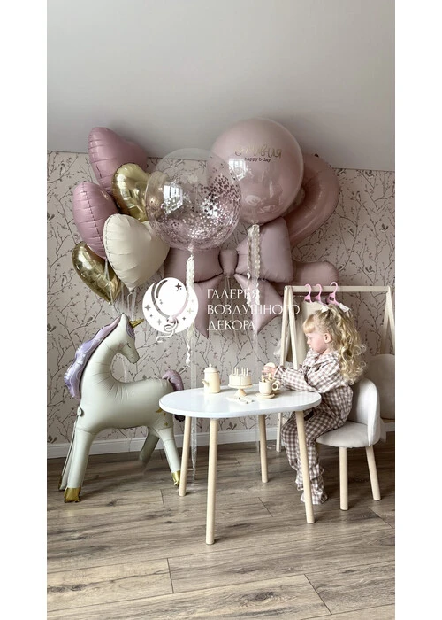 Набор из воздушных шаров с бантом и единорогом №15 — отзывы